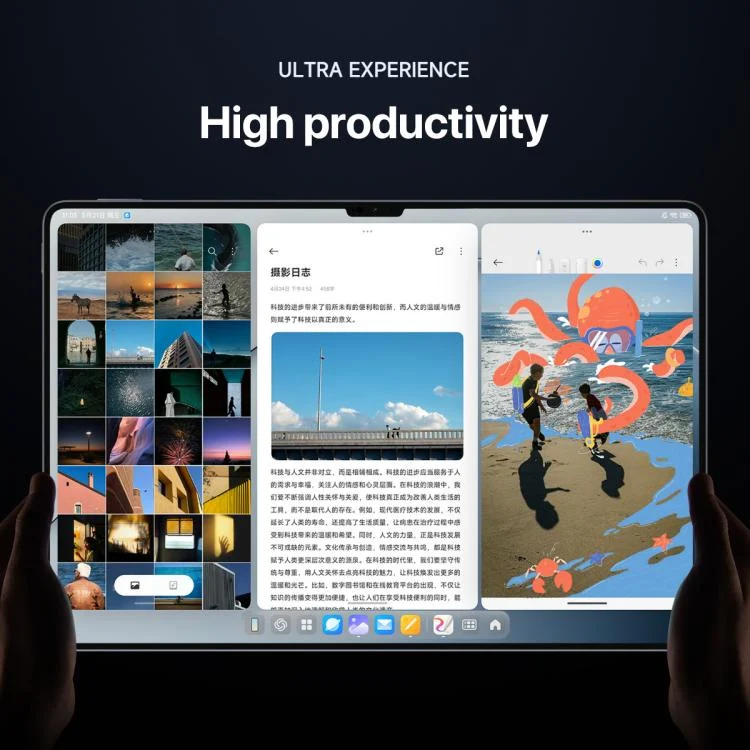 3. Display: AG nano texture + AR optical coating process soft light screen, greatly reducing reflectivity. 14 inch 3.2K AMOLED screen, 3200×2136 resolution, 275 PPI, up to 1600nits brightness, up to 120Hz refresh rate, up to 240Hz finger touch sampling rate, 240Hz stylus touch sampling rate, support Dolby Vision, Rheinland hardware low blue light, no flicker, rhythm friendly certification.