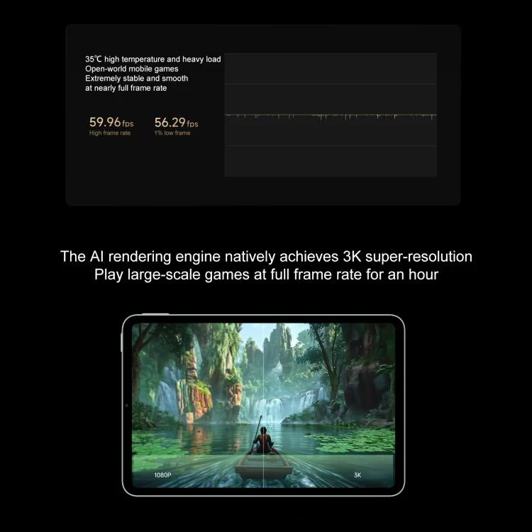 3. Display: 8.8 inch 3K LCD screen, 3008×1880 resolution, 403 PPI, up to 700nits brightness, up to 165Hz refresh rate, up to 372Hz finger touch sampling rate, 240Hz stylus touch sampling rate, support Dolby Vision, Rheinland hardware low blue light, no flicker, rhythm friendly certification.