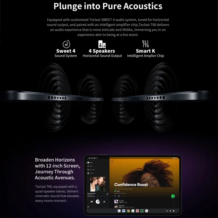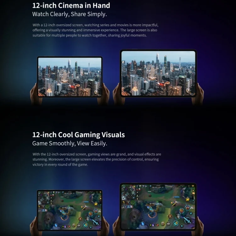 1. Max 12-inch Display: T60 boasts a sleek 12-inch screen, accentuated by a slim 6.5mm bezel. With an impressive 92% screen-to-body ratio, dive deeper into work, entertainment, and gameplay.