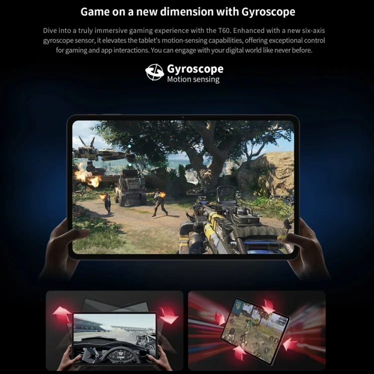 6. Max Sensory Intelligence: The T60 integrates light, hall, and proximity sensors for a smart tablet experience. Pair it with the T60 folio case for smart device wake-up. Also, its built-in gyroscope offers exceptional control for gaming and app interactions.