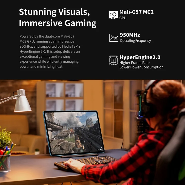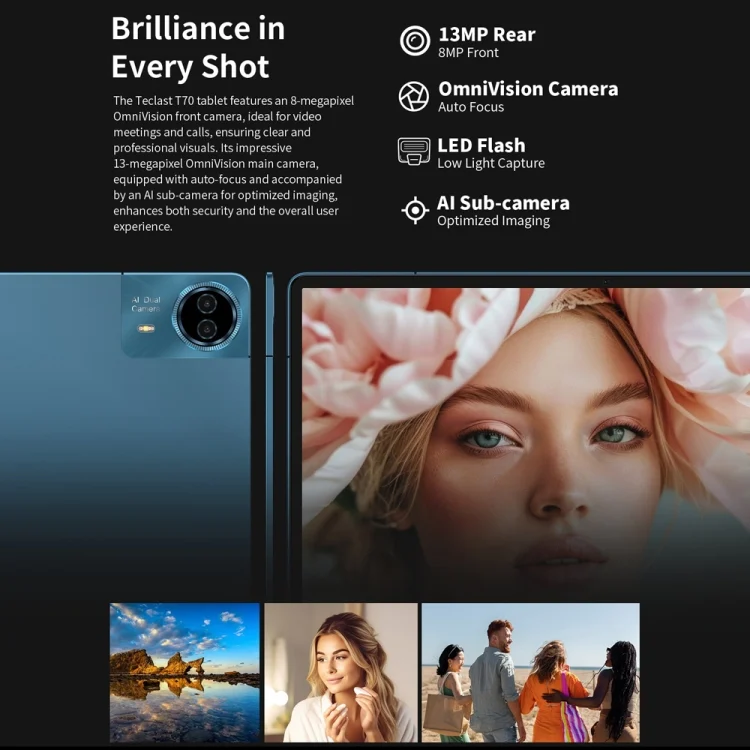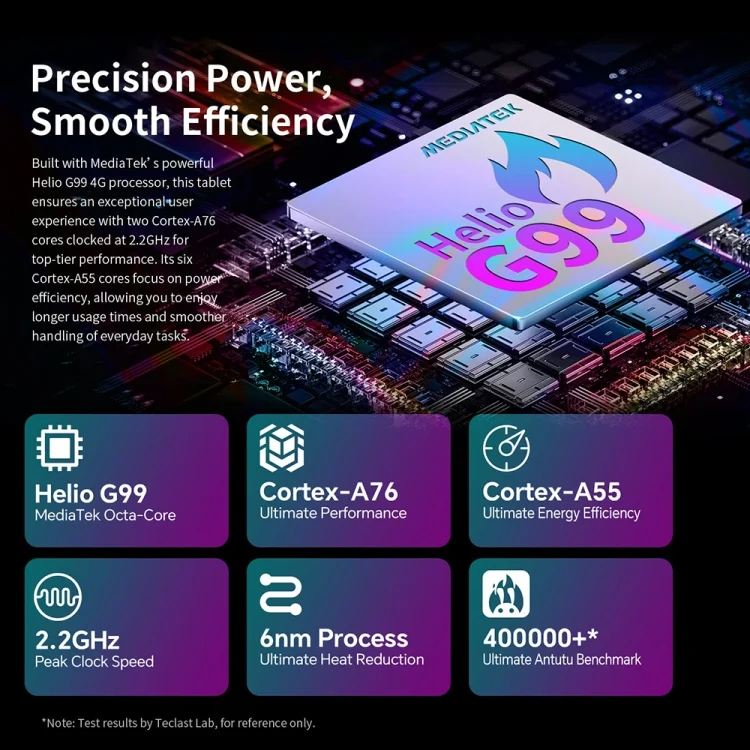 3. Helio G99 Power: At the heart of the T70 lies the formidable Helio G99 processor, setting a new standard for speed and efficiency. With up to 20GB RAM (8GB base plus a 12GB RAM Expansion) and 256GB storage, expandable to a colossal 1TB, this tablet is engineered to handle the most demanding applications and multitasking with ease, defining the apex of high-end computing.