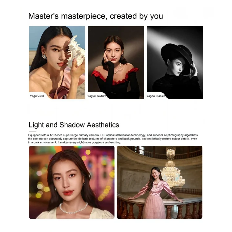 3. Camera Functions: Rear camera: YaGu portrait art style, wonderful snapshot, smart focus tracking, main character focus tracking, dynamic photos, time-lapse photography, AI photography, AI video, ultra-wide angle, large aperture, multi-lens video, night scene mode, portrait mode, professional photography, video, slow motion, panoramic mode, HDR photography, main character mode, night scene video, micro-movie, smart wide angle, filter, watermark, document scanning, super macro, smile capture, voice-activated photography, timed photography, continuous shooting, telephoto picture-in-picture, moon mode, high-pixel mode. Front camera: Dynamic photos, portrait mode, time-lapse photography, filters, smile capture, selfie mirror, voice-activated photography, timed photography, gesture photography, night scene mode, watermark mode, high-pixel mode, multi-lens recording