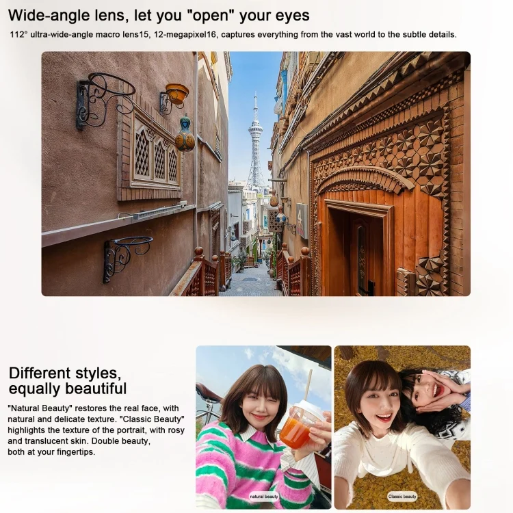 1. Rear Camera: 50MP wide (f1.95, OIS) + 50MP telephoto (f2.4, OIS) + 12MP macro (f2.2), AF