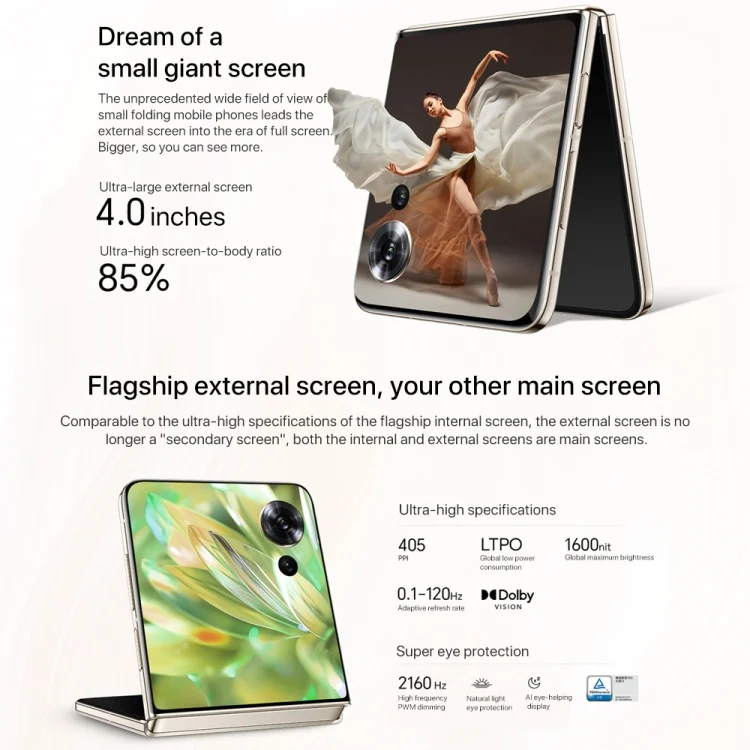 1. Screen Size: external 4.0 inches, internal 6.8 inches