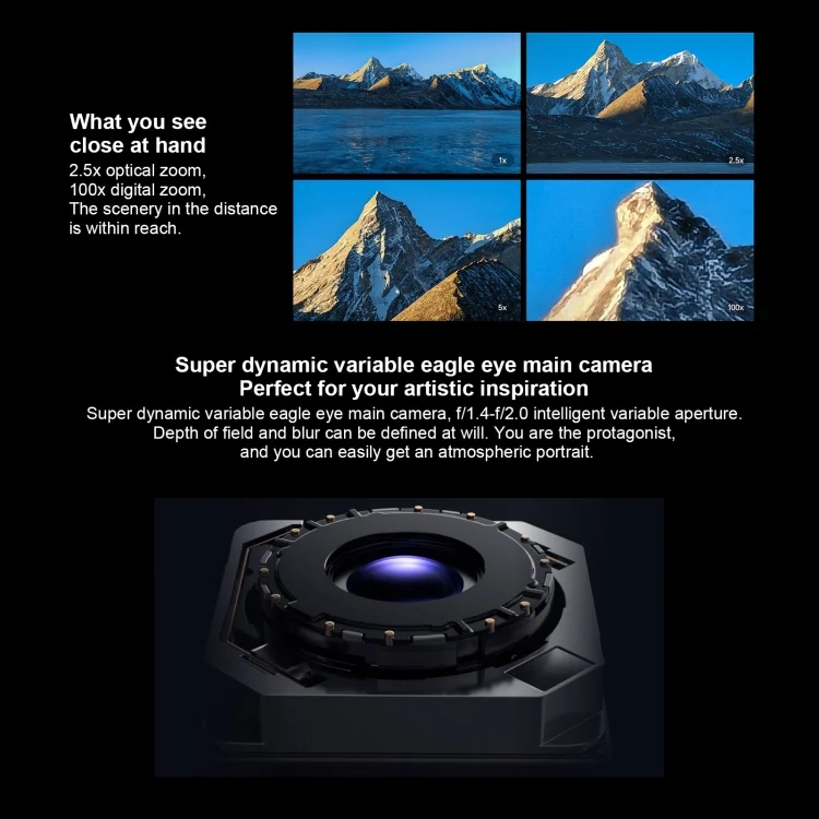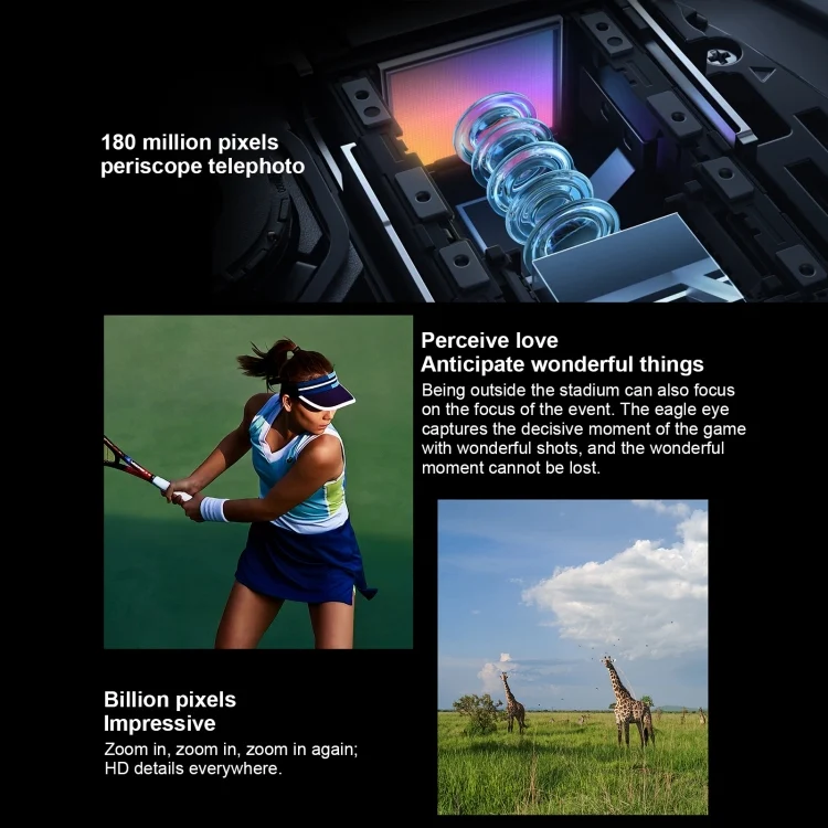 1. Dual Rear Camera: Rear camera: 50MP wide-angle camera (f/1.4-f/2.0 aperture, supports OIS optical image stabilization) + 180MP periscope telephoto camera (f/2.6 aperture, supports OIS optical image stabilization) + 50MP ultra-wide-angle camera (f /2.0 aperture), support autofocus