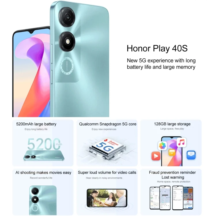 Honor Play 40S 5G, 6.56 inch MagicOS 7.1 Snapdragon 480 Plus Octa Core up to 2.2GHz, Network: 5G, Not Support Google Play