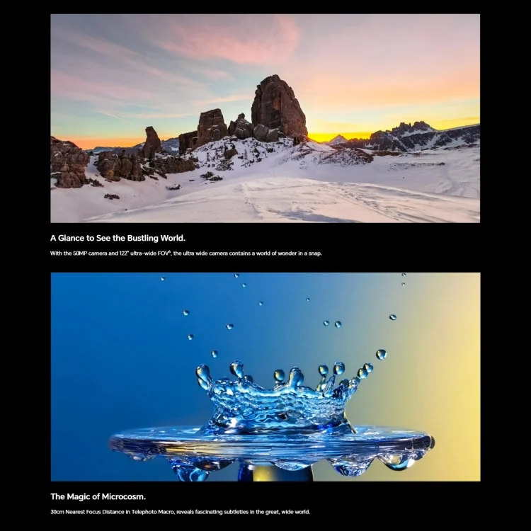 4. Equipped with 5 cameras: 3 rear cameras and 2 front in-screen cameras, take high quality pictures and excellent selfie. Three rear cameras:50MP wide-angle camera (f/1.6 aperture, supports OIS optical image stabilization) + 50MP periscope telephoto camera (f/3.0 aperture, supports OIS optical image stabilization) + 50MP ultra-wide-angle camera (f/2.0 aperture), support 8×8 dTOF laser focus; Front camera:12MP wide-angle camera (f/2.4 aperture) + 3D depth-sensing camera.