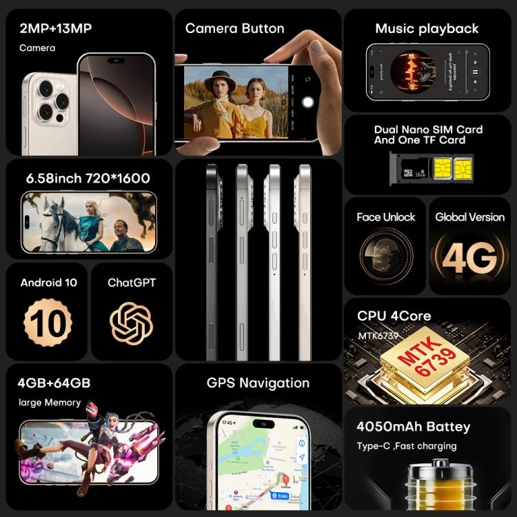 I16 Pro Max / PDQ6, 4GB+64GB, 6.58 inch Android 10 MTK6739 Quad Core, Network: 4G, Dual SIM