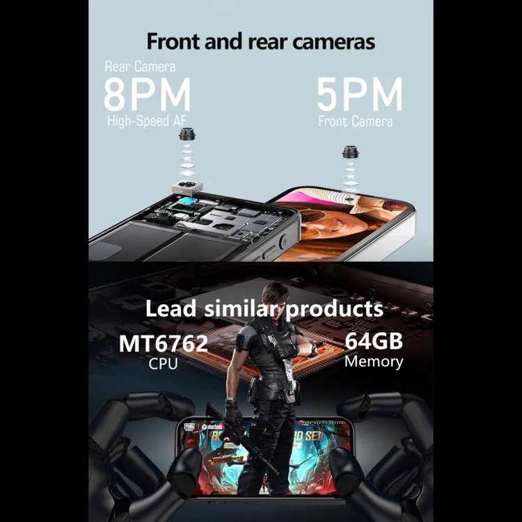 5. Cameras: Front camera 5MP, rear camera 8MP, high-speed AF autofocus