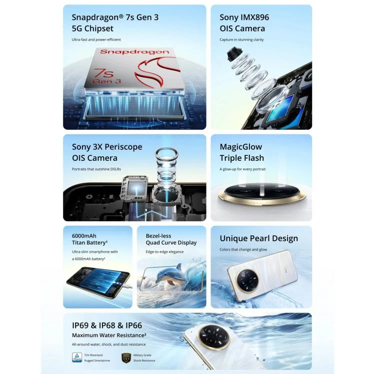 1. CPU: Snapdragon 7s Gen 3, octa core, 4nm, 64bit up to 2.5GHz