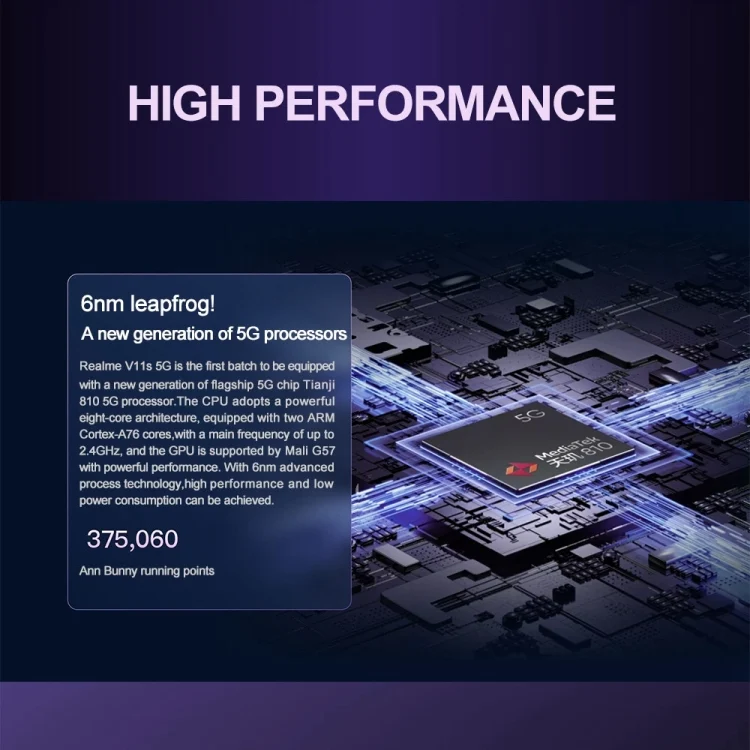 2. MediaTek Dimensity 810 octa core 6nm 2×2.4 GHz Cortex-A76 + 6×2.0 GHz Cortex-A55 processor, high performance, run fast and operate smoothly.