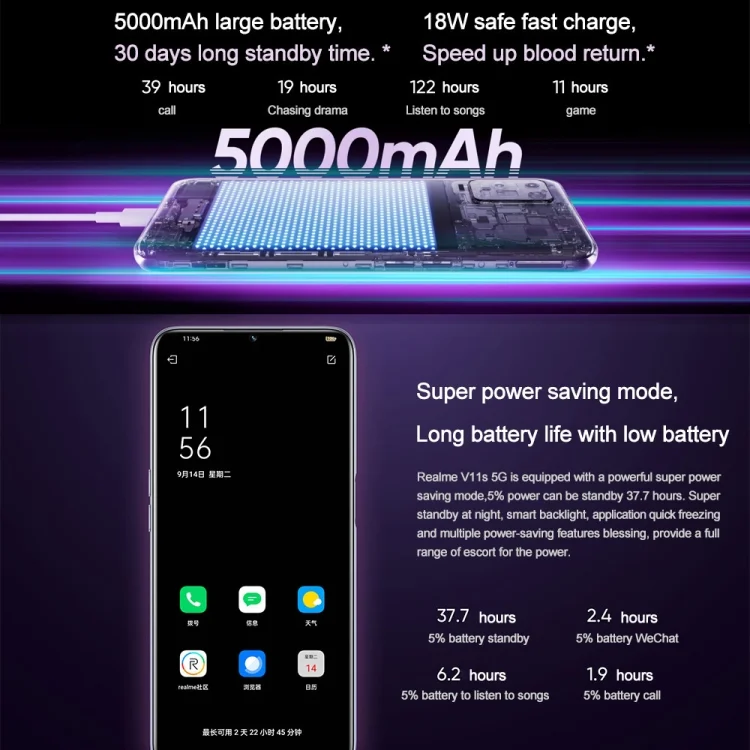 5. Built in 5000mAh high capacity battery, the battery will make the phone last for several days in normal use.