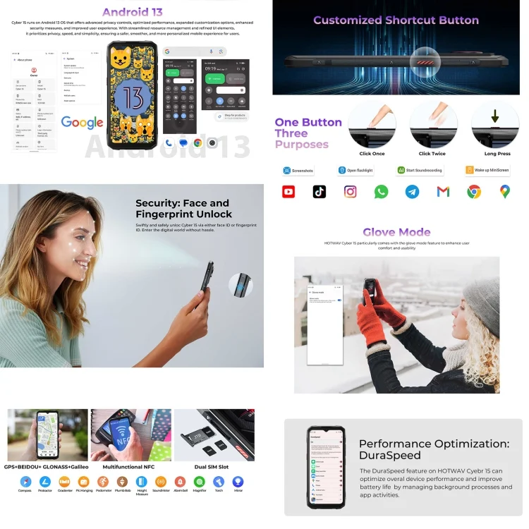 HOTWAV Cyber 15, IP68/IP69K Rugged Phone, 6280mAh, 6.6 inch Android 13 MediaTek MT6789 Helio G99 Octa Core, Network: 4G, NFC, OTG