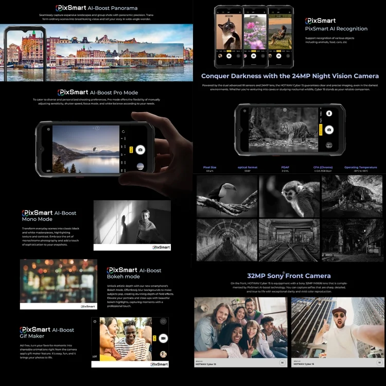 1. Front Camera: 32MP IMX616 1/2.7 inch f2.45, 80 degree Wide Angle