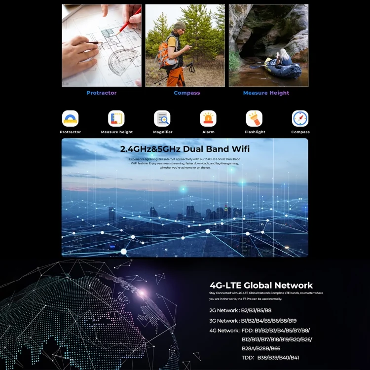 3. 4G: FDD: B1/B2/B3/B4/B5/B7/B8/B12/B13/B17/B18/B19/B20/B26/B28A/B28B/B66; TDD: B38/B39/B40/B41