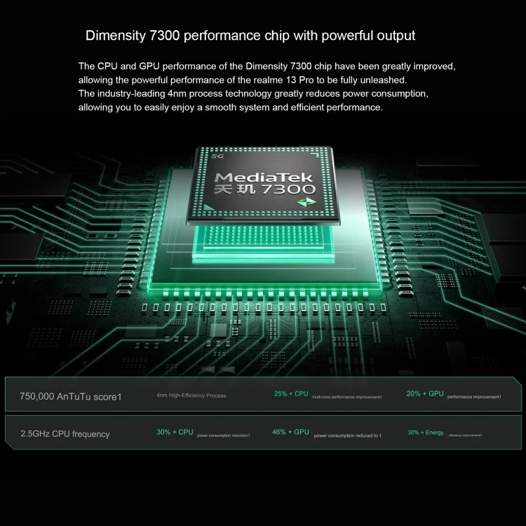 1. CPU: Dimensity 7300, octa core, 4nm, up to 2.5GHz