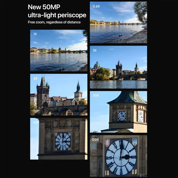 1. Rear: 50MP main (IMX906, 84.4 FOV, 2.4mm, f1.8, OIS) + 50MP telephoto (IMX882, 32.8 FOV, 73mm, f2.65, OIS) + 8MP wide (f2.2, 16mm, 112 degrees)