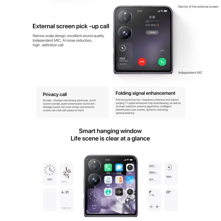 Xiaomi MIX Flip, 12GB+512GB, 6.86 inch + 4.01 inch Xiaomi HyperOS Snapdragon 8 Gen 3 Octa Core 4nm up to 3.3GHz, NFC, Network: 5G