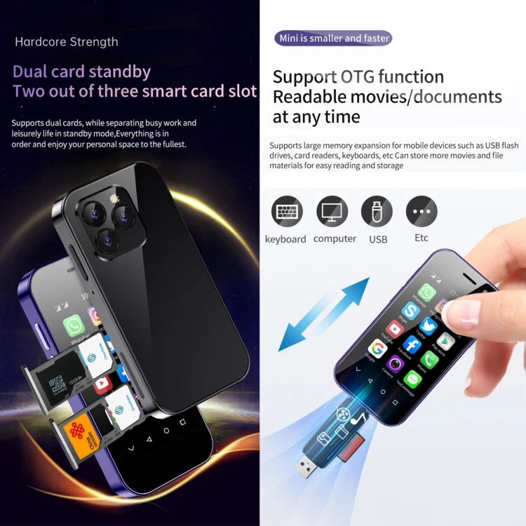 3. Dual SIM with dual standby 2 card slots, even smaller phone, you need dual SIM with dual standby, you can insert two SIM cards, you can also insert one SIM and one memory card.