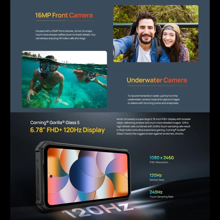 Ulefone Armor 24, Rugged Phone, Side Fingerprint, 22000mAh, 6.78 inch Android 13 MediaTek Helio G96 Octa Core, Network: 4G, NFC