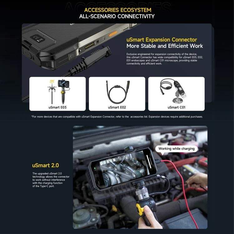 7. Expansion Connector 2.0: uSmart Expansion Connector, supporting uSmart series accessories. And the type-C port allows charging while the uSmart Connector working.