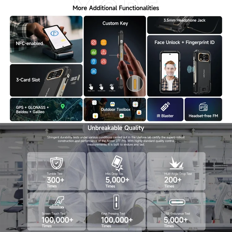 Ulefone Armor 27T Pro Rugged Phone, Thermal Imaging, 12GB+256GB, Night Vision, 10600mAh, 6.78 inch Android 14 MediaTek Dimensity 6300 Octa Core, Network: 5G, NFC