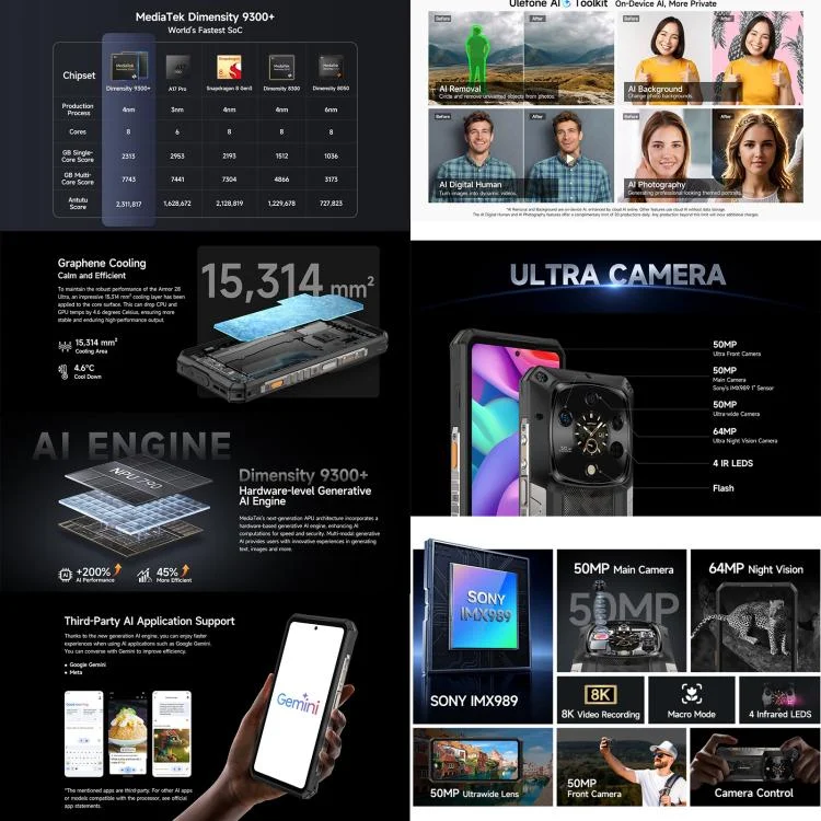Ulefone Armor 28 Ultra Rugged Phone, 16GB+1TB, Night Vision, 10600mAh, 6.67 inch Android 14 MediaTek Dimensity 9300+ Octa Core, Network: 5G, NFC