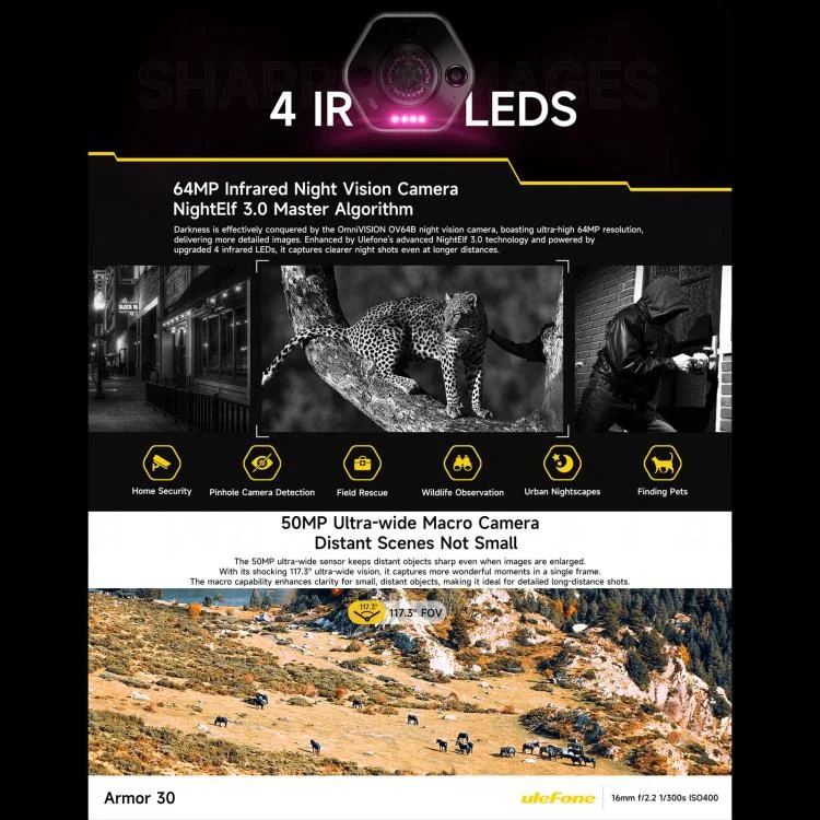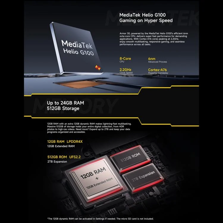 Ulefone Armor 30, 12GB+512GB, Night Vision, IP68/IP69K Rugged Phone, 6.95 inch Android 15 MediaTek Helio G100 Octa Core, Network: 4G, NFC, OTG