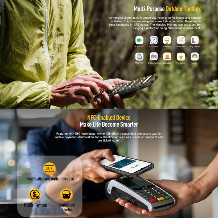 Ulefone Armor X13, IP68/IP69K Rugged Phone, 6.52 inch Android 13 MediaTek Helio G36 Octa Core, Network: 4G, NFC, OTG