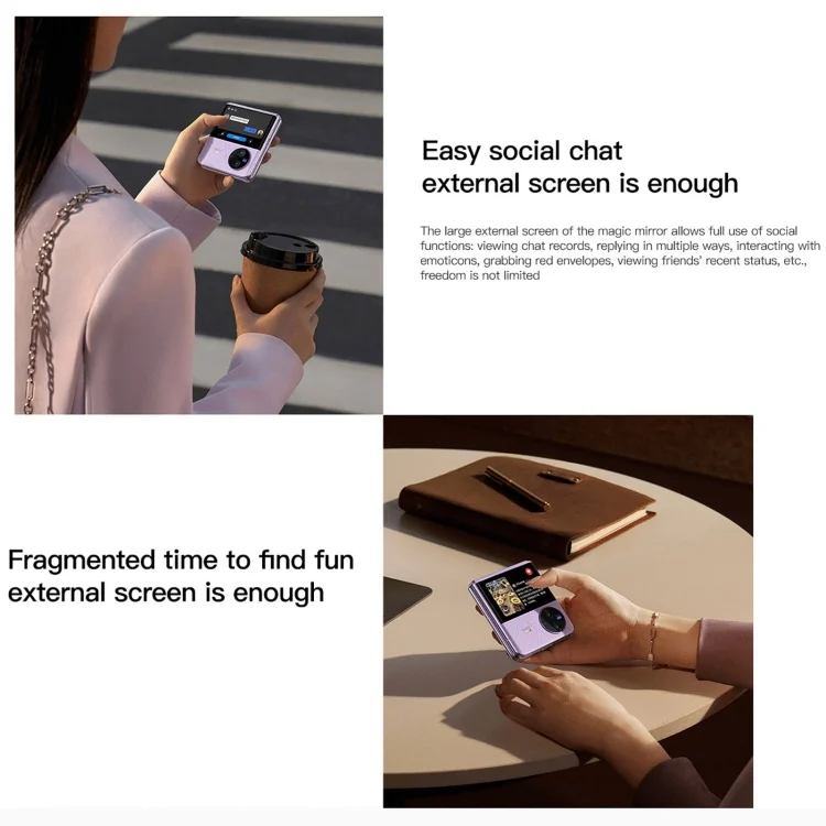 1. 6.74 inch 2520 x 1080 main screen, 87.43% full display, small body, wide field of vision. 1.07 billion colors, 406PPI, 60Hz / 120Hz refresh rate, HDR10+ technology, vivid colors, good for watching video, playing games. 3.0 inch 682 x 422 secondary screen, 267PPI, 60Hz, 16.7 million colors,