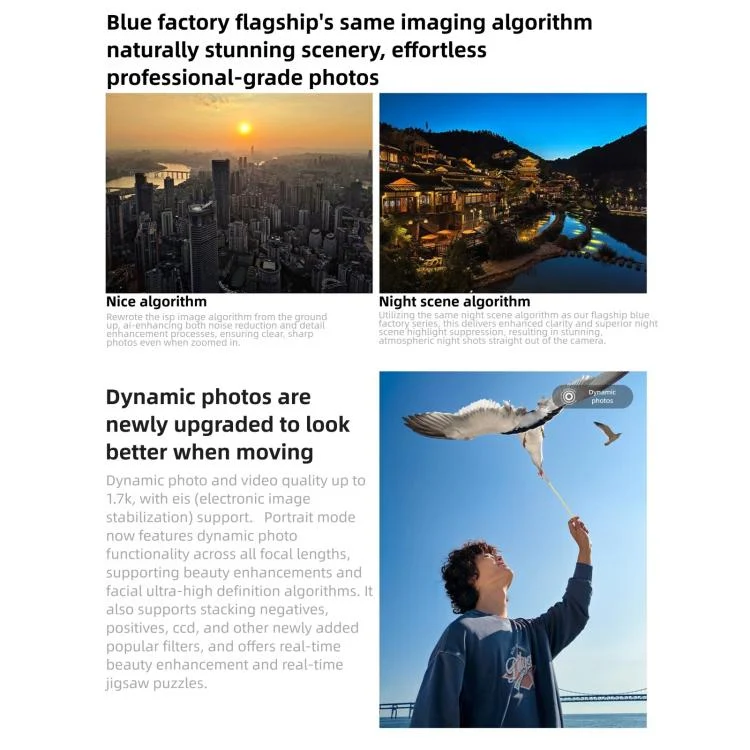 3. Rear camera shooting modes: Snapshot, Night Scene, Portrait, Photo, Video, Ultra HD Document, 50MP, Panorama, Slow Motion, Time-lapse, Time-lapse, Super Moon, Professional, Short Film, Jovi Scan, Fisheye
