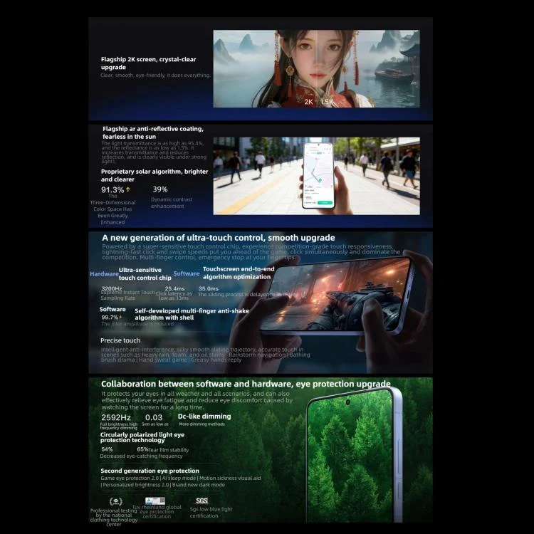 1. Wi-Fi: Supports WLAN 2.4G, WLAN 5.1G, and WLAN 5.8G frequencies; supports Wi-Fi Display, 2×2 MIMO, MU-MIMO, Wi-Fi 6, and Wi-Fi 7; 2.4G & 5G dual-channel concurrent operation.