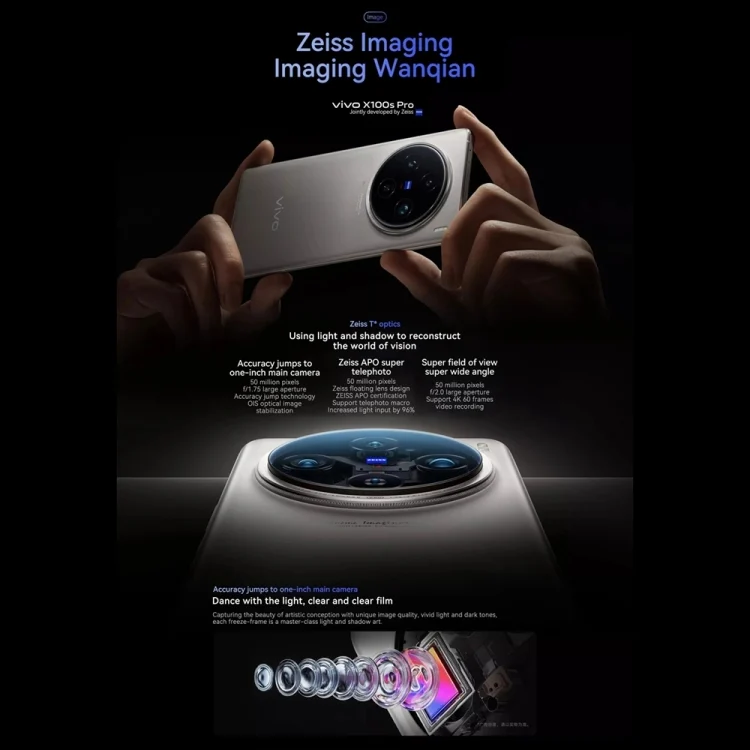 vivo X100s Pro, Triple Back Cameras, 16GB+1TB, Face ID / Fingerprint Identification, 6.78 inch Android 14 OriginOS 4 Dimensity 9300+ Octa Core, OTG, NFC, Network: 5G, Support Google Play