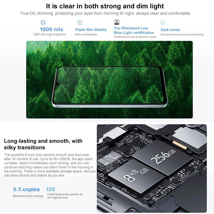 1. CPU: Dimensity 6300, octa-core, 64 bit, 6nm, 2 x 2.4GHz + 6 x 2.0GHz
