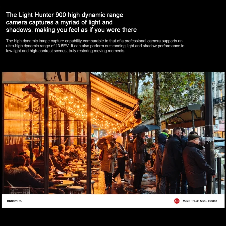 1. 50MP high dynamic main camera (Light and Shadow Hunter 900 customized image sensor, super large photosensitive element, f/1.62 aperture, equivalent to 23mm focal length, support four-in-one 2.4um large pixel output, support OIS optical image stabilization, QPD Phase focus, ALD coating