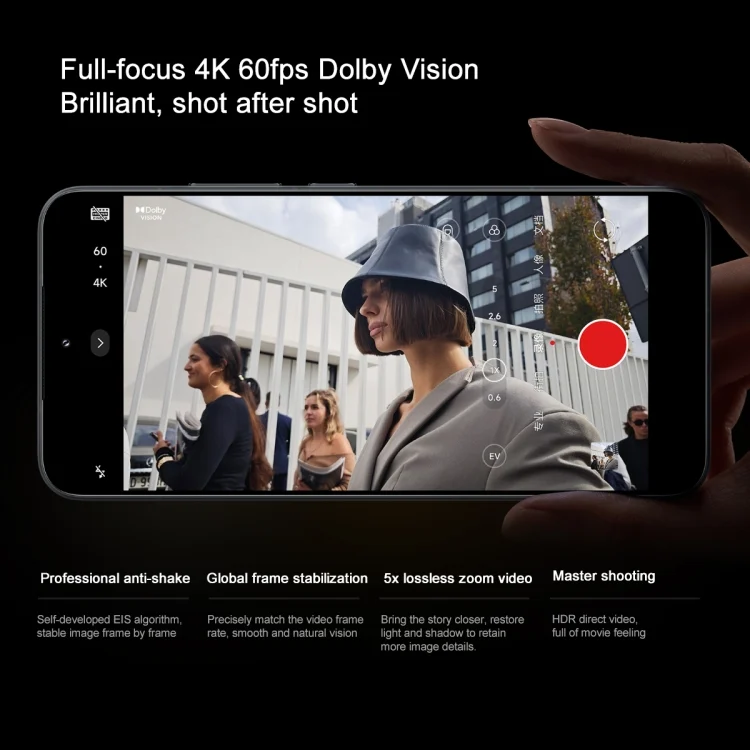 2. 50MP Leica floating telephoto: f/2.0 aperture, equivalent to 60mm focal length, 10cm~infinity focus distance, supports OIS optical image stabilization, supports Zoom EIS image stabilization