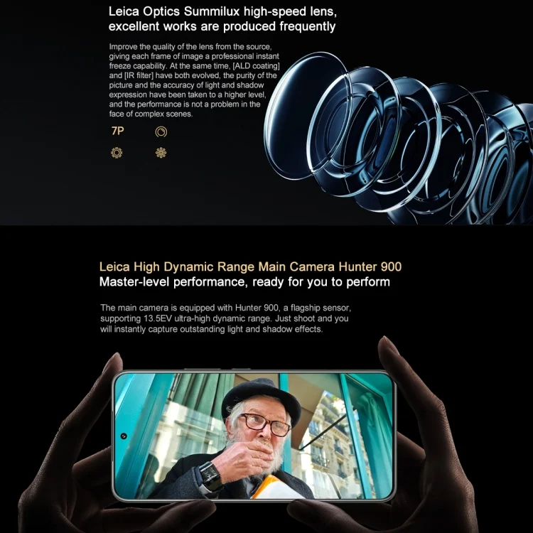 1. 50MP high dynamic main camera: Light Hunter 900, f/1.44 aperture, equivalent to 23mm focal length, supports four-in-one 2.4um large pixel output, supports OIS optical image stabilization, QPD phase focus, 7P coating