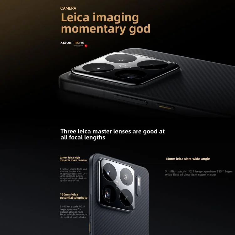 1. Rear Camera: 50MP Hunter 900 High Dynamic Range Main + 50MP 120mm Leica periscope telephoto + 50MP 115 degree Leica ultra-wide angle