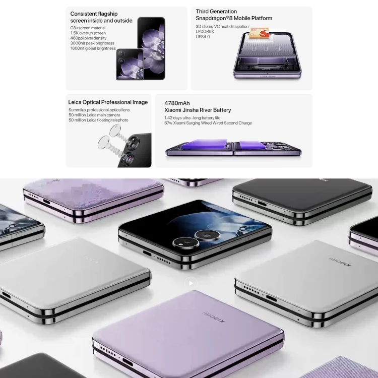 Xiaomi MIX Flip, 12GB+256GB, 6.86 inch + 4.01 inch Xiaomi HyperOS Snapdragon 8 Gen 3 Octa Core 4nm up to 3.3GHz, NFC, Network: 5G