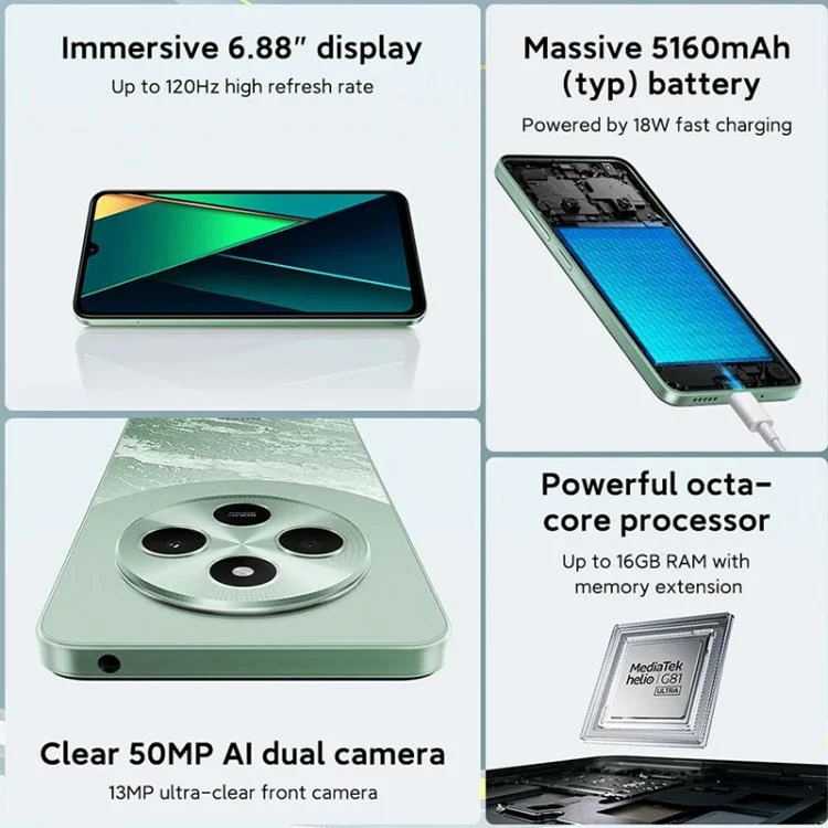 Xiaomi POCO C75 Global, 8GB+256GB, Side Fingerprint, 6.88 inch Xiaomi HyperOS MediaTek Helio G81-Ultra Octa Core, NFC, Network: 4G