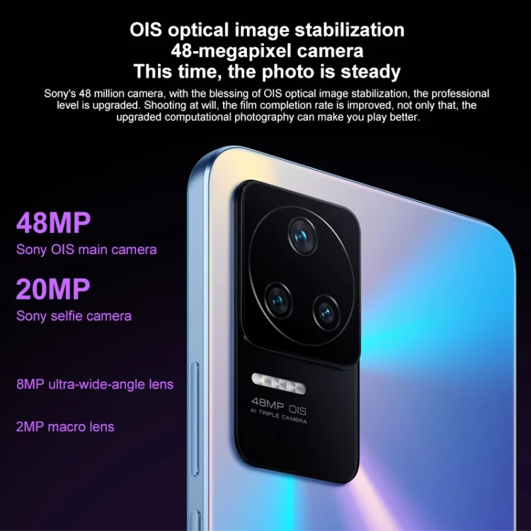 3. Equipped with 4 cameras, 48MP IMX582 ultra-high resolution primary camera + 8MP 119 degree ultra wide-angle camera (AI distortion correction algorithm) + 2MP macro camera triple rear cameras and 20MP AI front camera. Take beautiful scenery pictures and selfie.