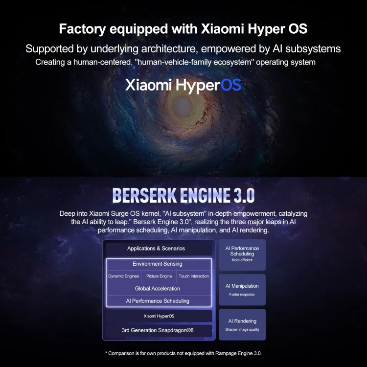 1. Battery: 5000mAh capacity; built-in lithium-ion polymer battery, non-removable, HyperOS P2 fast charging chip; HyperOS G2 battery management chip
