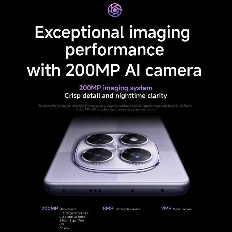 Xiaomi Redmi Note 14 Pro 5G Global, 8GB+256GB, In-screen Fingerprint, 6.67 inch Xiaomi HyperOS MediaTek Dimensity 7300-Ultra Octa Core, NFC, Network: 5G