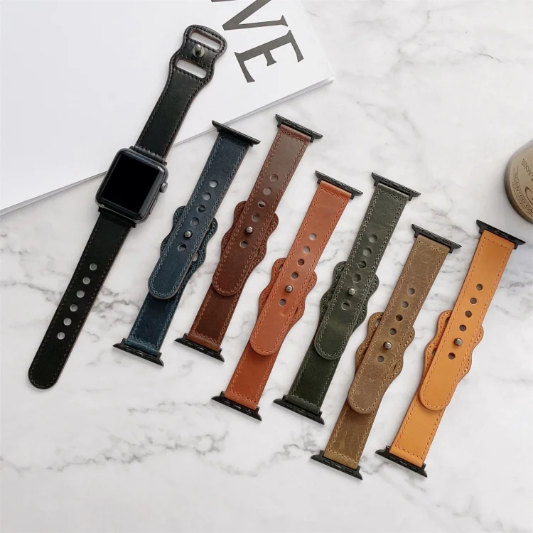 8-shape Buckle Retro Leather Replacement Strap Watchband For Apple Watch Series, 7 41mm / 6 & SE & 5 & 4 40mm / 3 & 2 & 1 38mm, 7 45mm / 6 & SE & 5 & 4 44mm / 3 & 2 & 1 42mm