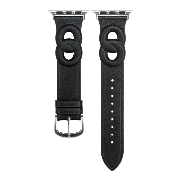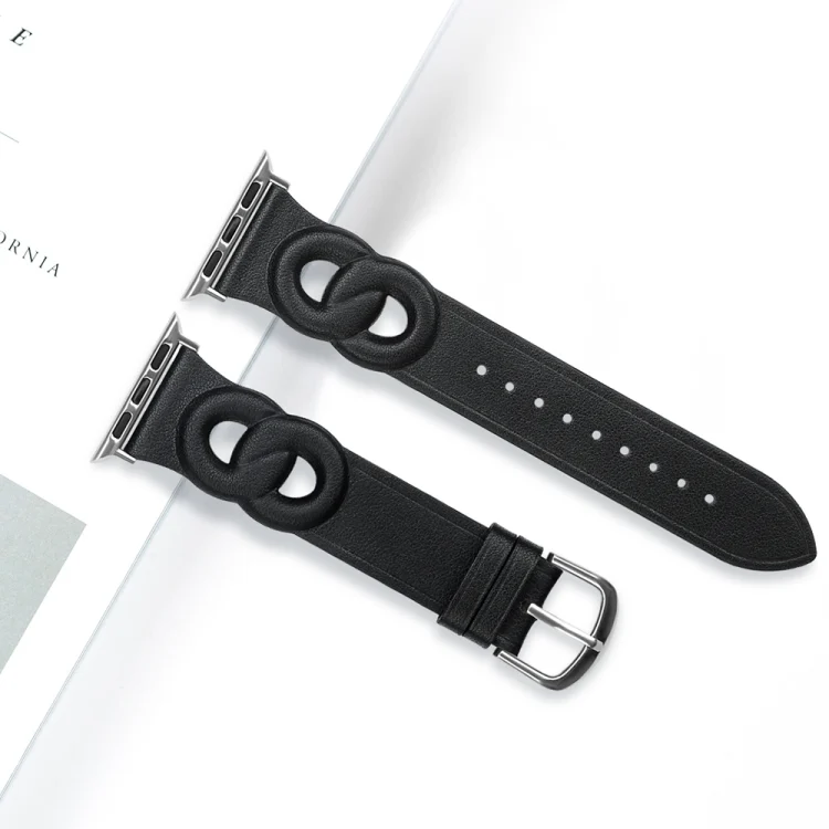 Double Rings Genuine Leather Watchband For Apple Watch Series