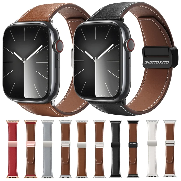 DUX DUCIS YA Series Magnetic Buckle Genuine Leather Watch Band, For Apple Watch SE 2023 44mm, For Apple Watch SE 2023 40mm, For Apple Watch Ultra 2 49mm, For Apple Watch Series 9 45mm…