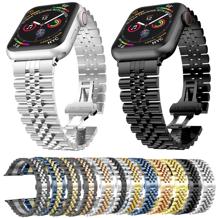 Five Beads Stainless Steel Replacement Watchbands For Apple Watch Series, 7 41mm / 6 & SE & 5 & 4 40mm / 3 & 2 & 1 38mm