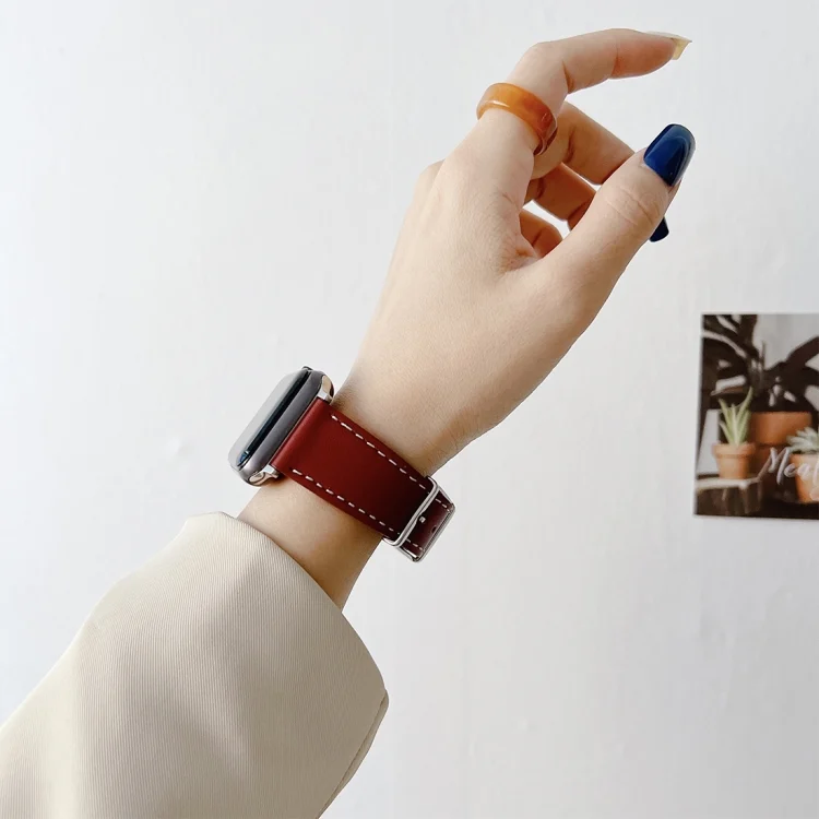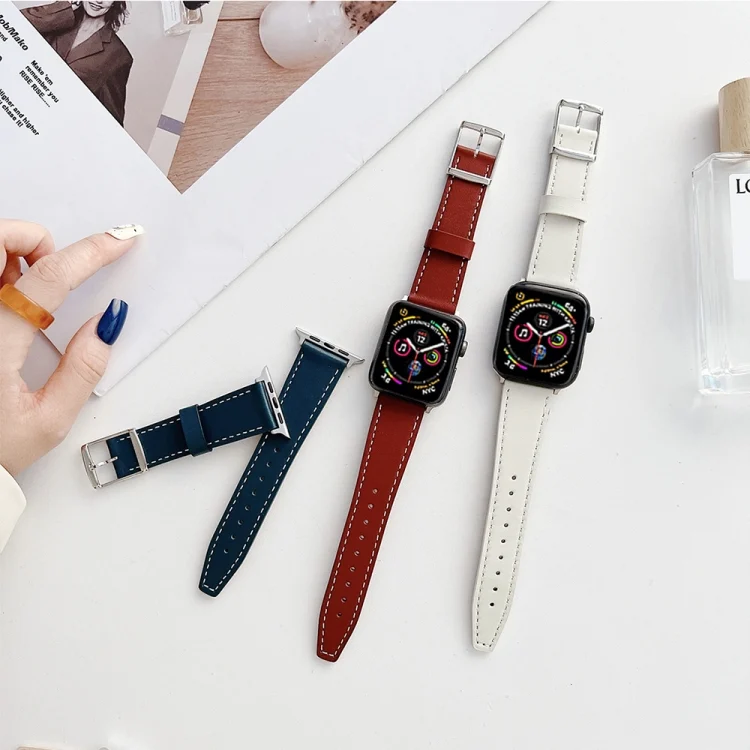 Flat Texture Leather Strap For Apple Watch Series
