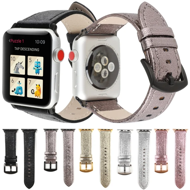 Glitter Genuine Leather Watch Band For Apple Watch Series