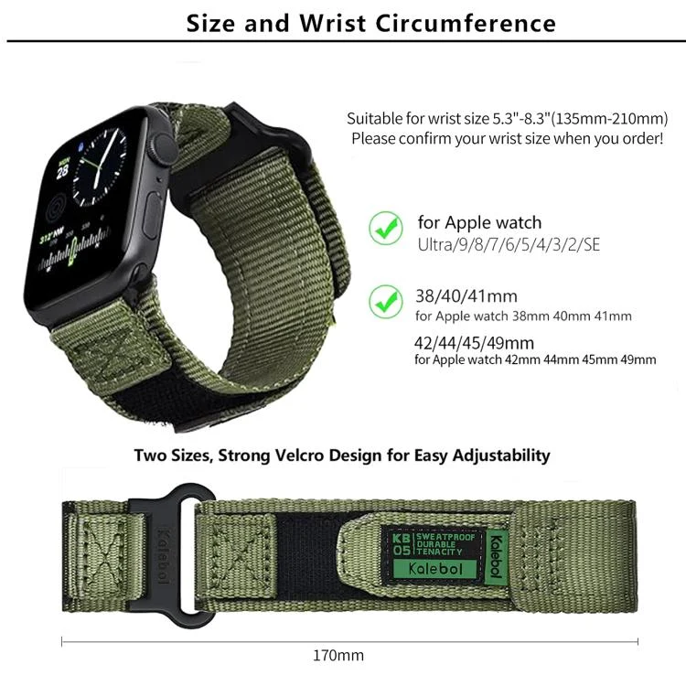 Kalebol Canvas Nylon Hook and Loop Watch Band, For Apple Watch 46mm / 49mm / 45mm / 44mm, For Apple Watch 42mm / 41mm / 40mm / 38mm